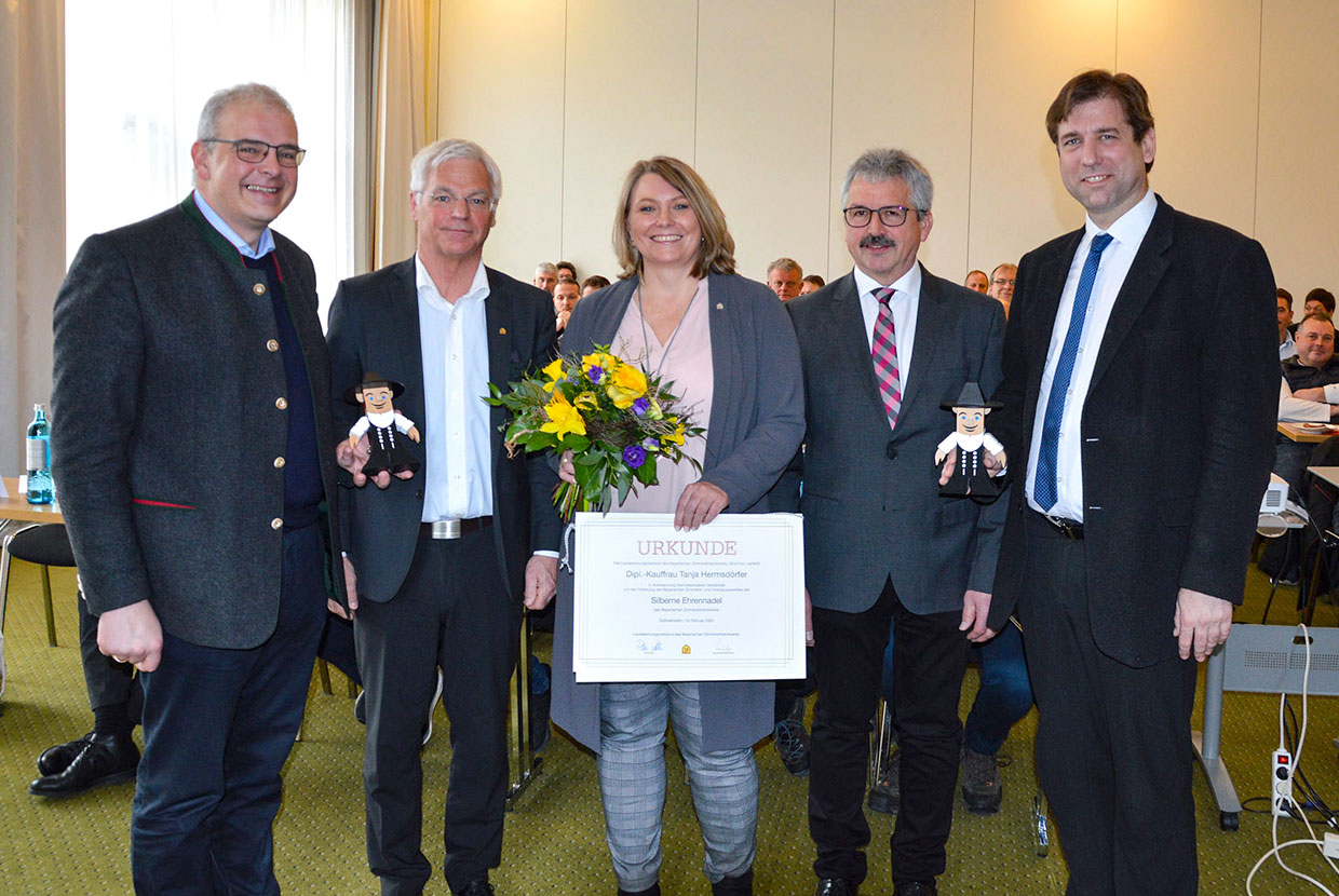 Danach ehrte Aicher die sehr engagierte Unternehmerfrau Tanja Hermsdörfer (Jahrgang 1971) aus der Zimmerer-Innung Kulmbach.